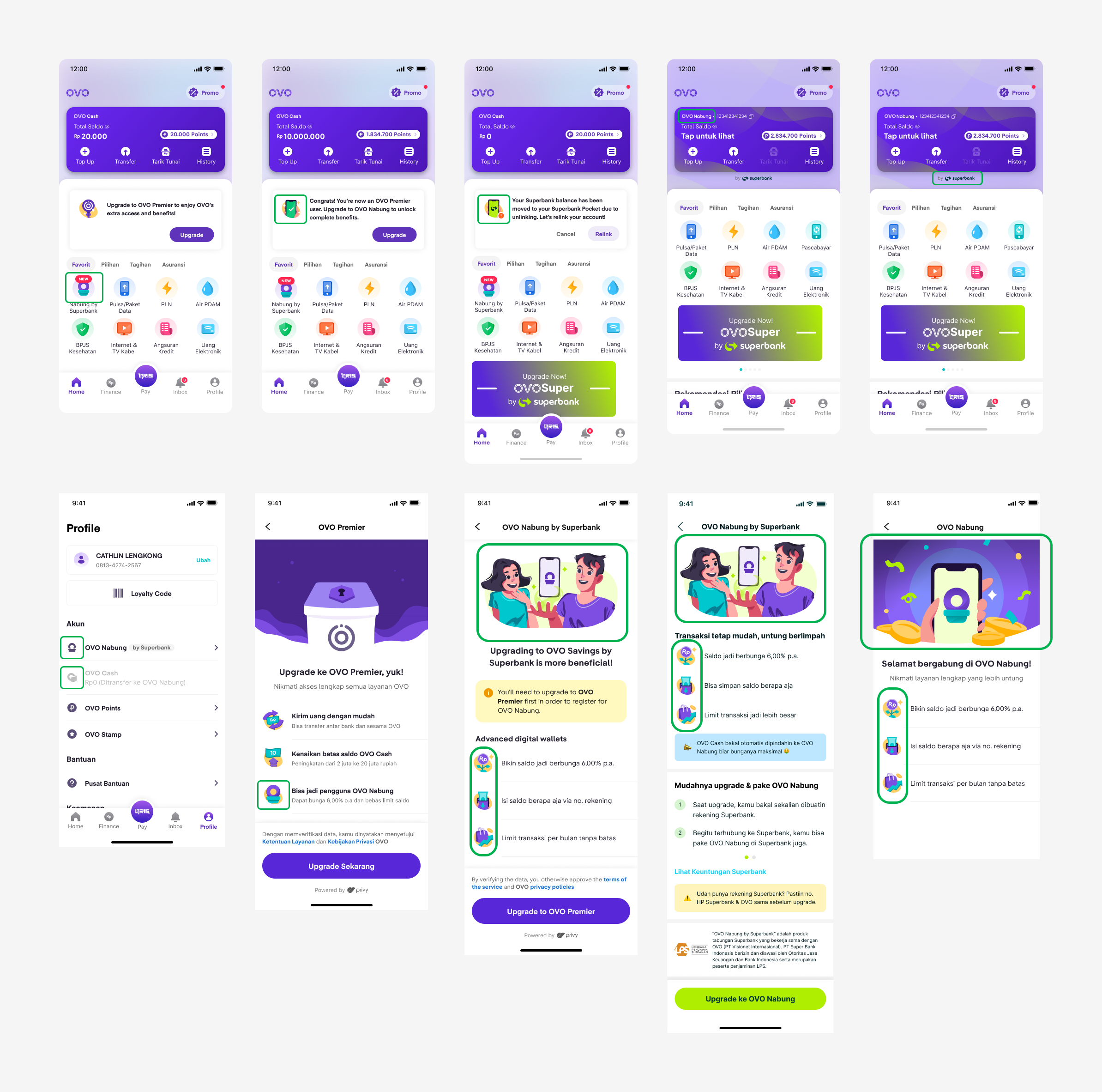 defining when the user sees OVO vs Superbank branding, or even the combination of both branding (OVO Nabung)