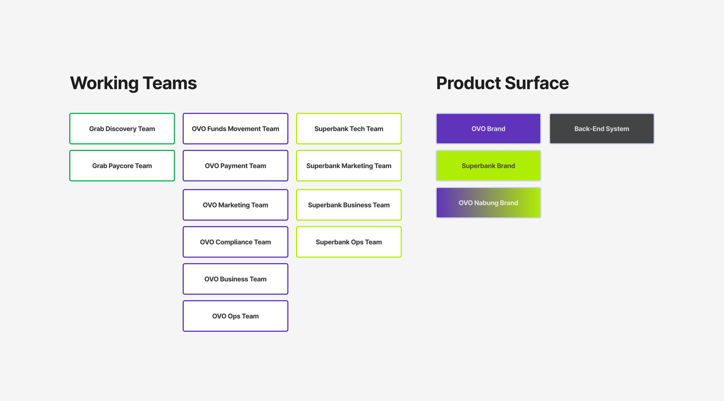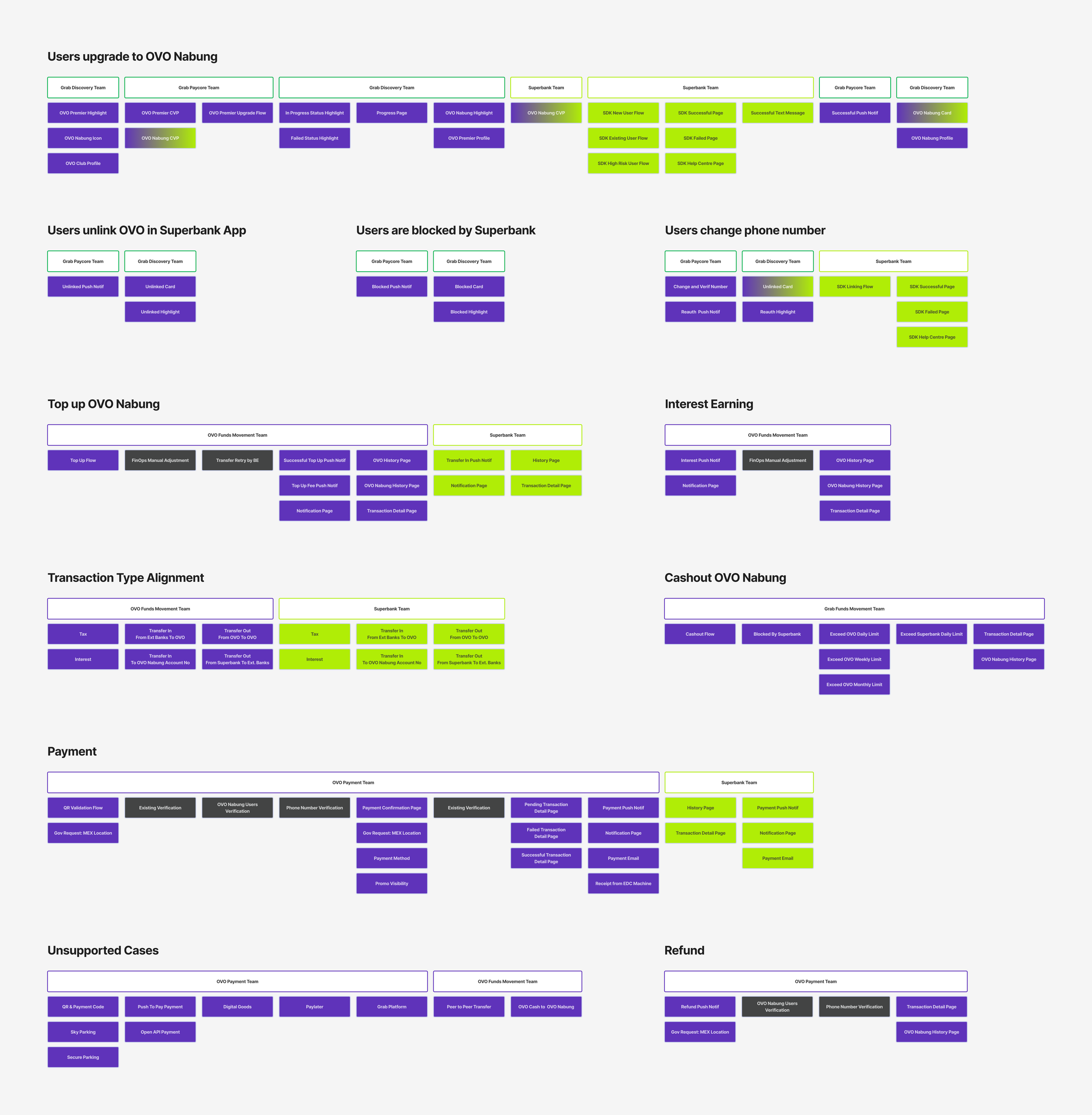 (OVO Payments, Grab Paycore, Grab Onboarding, OVO Funds Movement, Superbank team)Multiple PMs