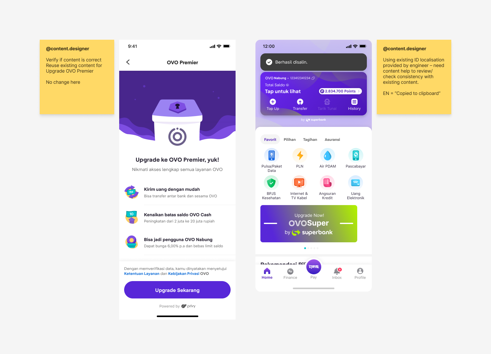 Content designers from OVO and Superbank