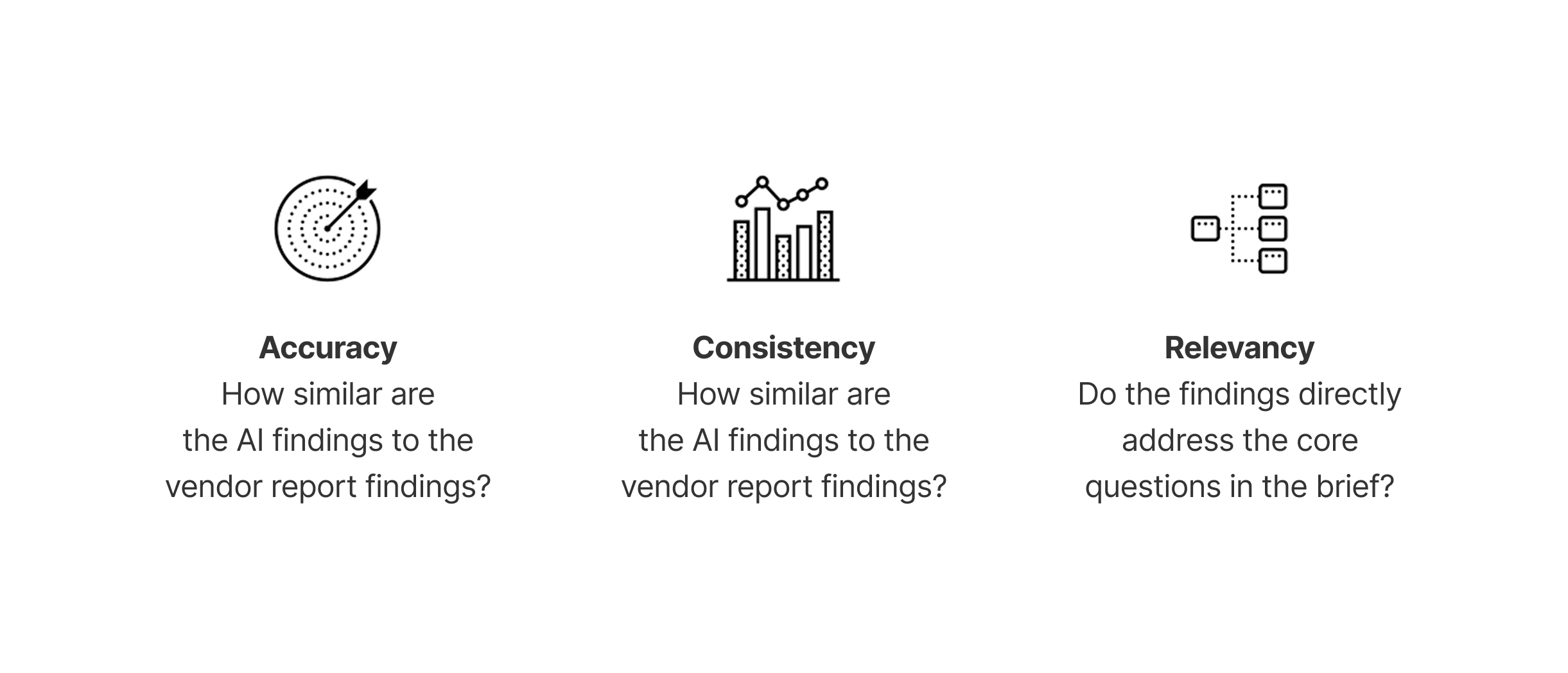 Accuracy: similarity of AI outputs vs vendor findings
